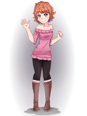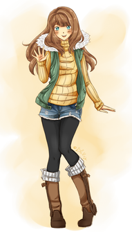 #bell #boots #mei #oc #shorts #sweater #originalcharacter #originalcharacteroc #thighhighstockings