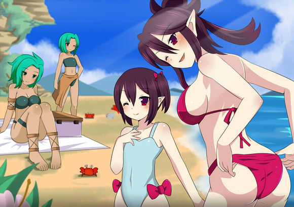 So, what's their deal? The main reason Sierra's a blushing basketcase in a lot of pics that HandsofMidaz does is because prior to being reborn as a demon -- yeah, elf ears can mean "demon" in anime/manga -- she was almost exclusively male in most of her past mortal lives. That more or less means she's hypersensitive/shy about even noticing her own body. Being in a realm with other demons, they kinda shamelessly exploit that or playfully troll her. (it's not quite a straight "transgender" type story because she's not actively trying to "return" to anything, it's just sort of an undercurrent)