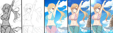For those of you who may be wondering, how does Midaz do such an artworkIt begins with the pose then working up to the details, After the details have been finalized I do the lineart and make some adjustments on the pose like the size of the hands, thickness of the thigh, expressions etc,.. After finalizing the artwork, I add the base color and finally do the shading...