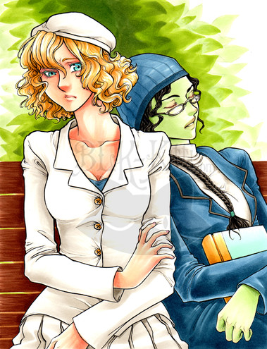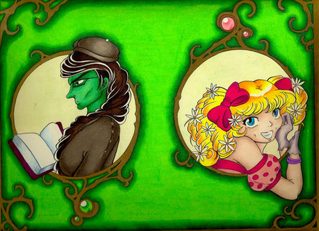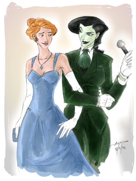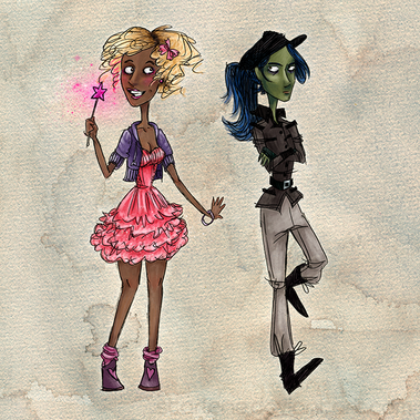 Another messing about in marker.. this is Glinda and Elphie in their school garb (drawn from memory so I may have wonked up the detail whoooo) and Glinda's left hand was placed really awkwardly me no likeyDidn't really like how it all turned out but it was good practice!