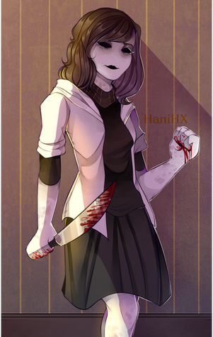 She is just adorable! ( I'm not sure if that's the right word for a creepypasta, but eh, she is ) amazing art! And thanks so so so much for the llama badge! It means so much to me!