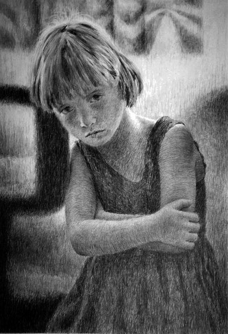 I can count on both hands the number of commissioned works I've done. All were portraits (one mostly an animal). All were done from photographs, most with invented backgrounds. And all but two met my demand that I be the photographer based on the principle that only I, as the artist, can see what I would choose to do if painting from life. Two I looked at the commissioner's photo for weeks to months before I found something appealing to me, and selected out from their photo just that and only that. Two were in trade for medical bills, one of which I included Carel Fabritius' "The Goldfinch" [link] I thought I'd submitted the portrait of Dr. Bridge's Son but see I haven't. Look for it next. I don't have the portrait of his daughter in which I painted Fabritius' "The Goldfinch".