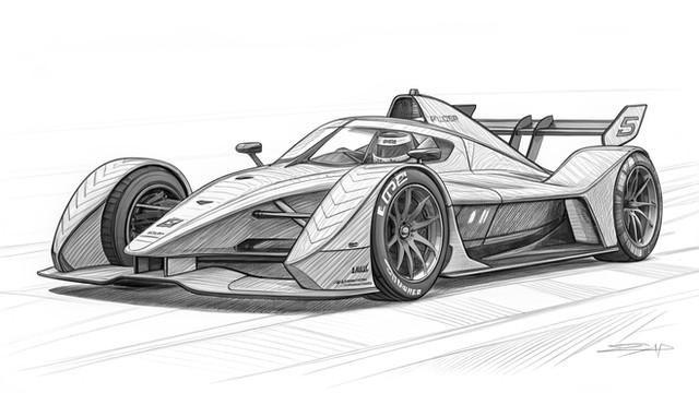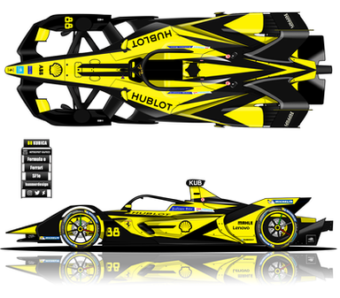 Tesla Formula E concept. Model R, brushed stainless steel wrap with red highlights, chequered pattern around the nose, various electrical wires and flux capacitor! Driver:Β Jonathan AberdeinRelated content