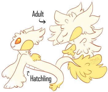 - Anatomy differences > Rather than full wings, there will be only a small membrane connecting the arms to the body. Whatever crest the hatchling has will automatically be doubled. Hooves in place of paws. Ears are Fawn-like with fluff running along the lower side. Manes are fluffier than a Pterrur's, shorter than a Fawn's