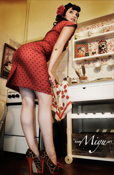 Colours and composition are gorgeous. You've really captured the playful sensuality of pin-up girls. The (only slightly) anachronistic microwave doesn't even matter. I am fully in love with this photograph.