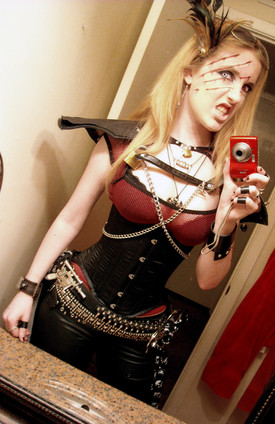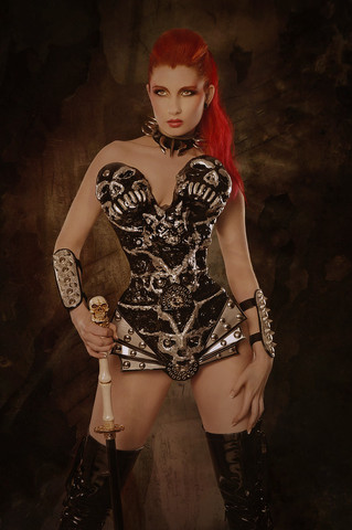 Horns, corset, and holster by Asheville's Organic Armor - they have a really unique way of making comfortable flexible material look like metal.