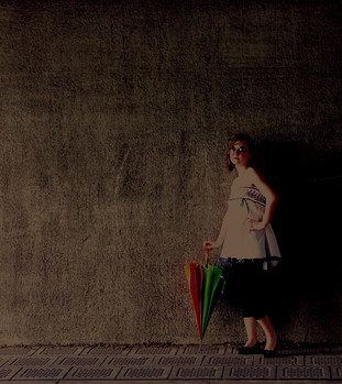 i loove the expression. and the umbrella adds a nice touch to it. =]