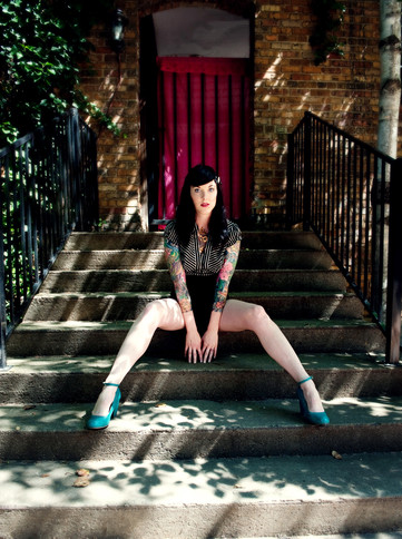 I love the composition of this piece and the striped stockings and glove were a great wardrobe choice.
