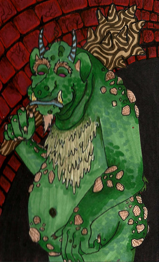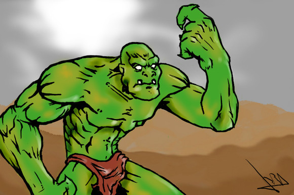 Textures and shading very nice. Like his stoned expression. Personally like big feet on my giant monsters, but I get that's my style not yours. Those tiny feet don't look like they could support him, but the style's loose enough that it doesn't really break the mood.
