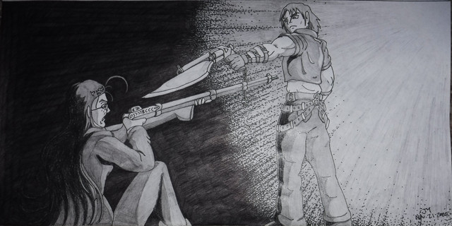 Babes, guns aaaand Alucard? You donΒ΄t need much more to create a cool picture. ThatΒ΄s good work Hanoko, I like his smile and her gun.