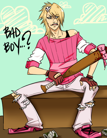 Travis Touchdown, our cute little "protagonist" from the No More Heroes game. I didn't draw his beam saber accurately because I was at work and just doodled whatever I felt like doodling. That might be the main reason why his body looks all weird and shit, but I like it.Might turn this into a print for Fanime.
