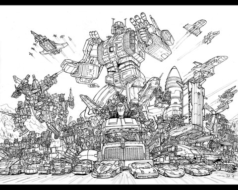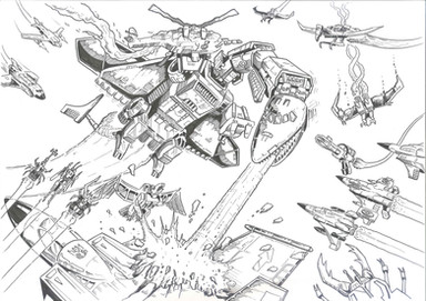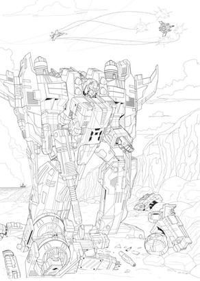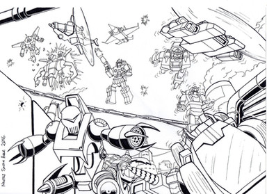 Here be the inks of a rather old piece of battlescene piece of mine. Started on the inks over a year ago and figured I should finally finish it.Apart from Omega, the characters are from the Victory, Zone and Battlestars series.