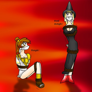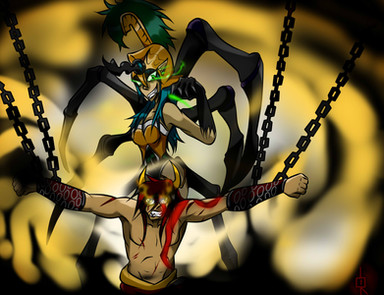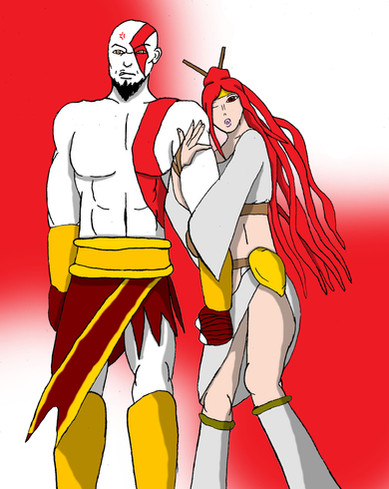 This is my entry for the Bound Divinity contest [link] by . It seems that the goddess of the moon, Osaira, is restrained by the god of war, Ares Kratos. I made her a dress for this pic.Osaira is s OC