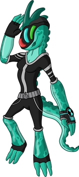 This is Alien Rider 041: Kamen Rider ChamAlien.Alien Select! (Chameleon-themed music) ChamAlien! It's Camouflage Time!