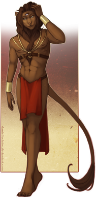 Love his design, pose, hair, complexion, and clothing. This is probably the sexiest lion-humanoid I've ever seen.