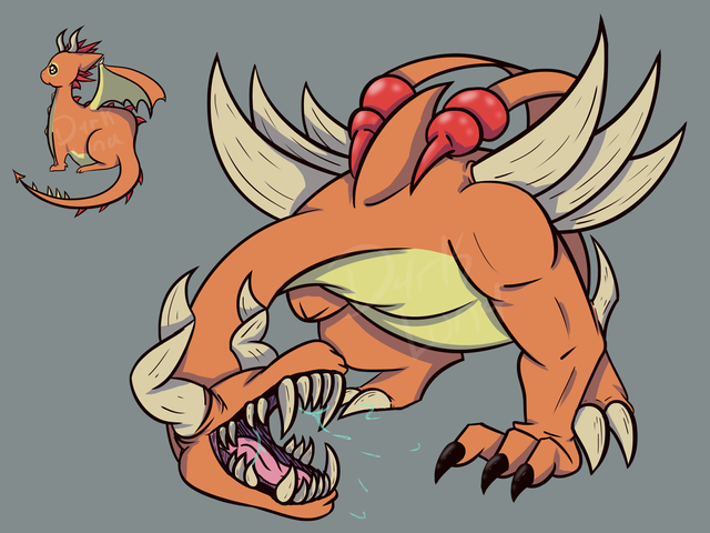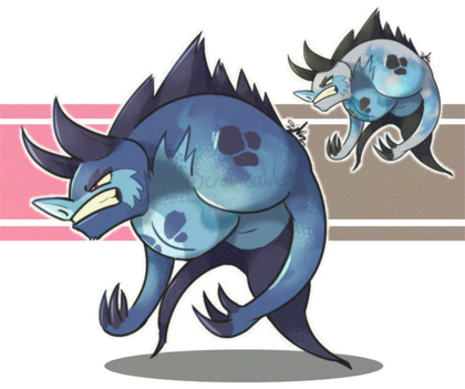 Taums are avian monsters that have two mouths; one is a beak, which can be inspired by the beak of any bird, and the other is a toothy mouth inspired by that of any beast, from bear-like fangs and boar tusks to rows of shark teeth. They have thick arms that end in bear-like claws, which can slice through the toughest of materials (e.g. dragon scales, metal, diamond). Underneath the big claws are dexterous human-like hands that can allow the taum to grasp onto objects. Their body type and structure is similar to that that of a human, including their legs and feet. They can run in a bipedal stance if preferred, but for speed they will often run on all fours.