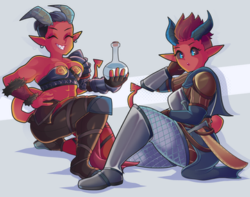 Histari and Xoriica get into a tussle, Xoriica trying to get her sister to stop being a bandit and be good for once, but ended up stealing a size potion to try and get the upper hand over her, but the potion spilled on both of them in it's entirety, making them both much much bigger than anticipated. and now the town finds itself located precariously between two gigantic tiefling buttcheeks.If i was in that town, it would be worth it for me