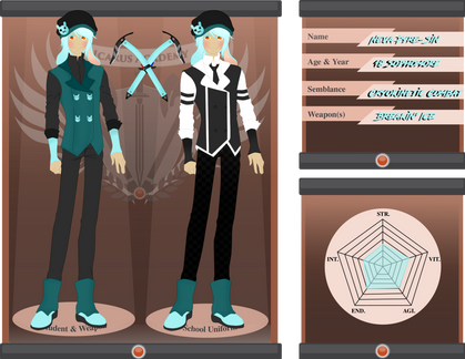 Itchio fights with a very uncommon Weapon: a Wrench, to be exact an Infinium-Wrench. Infinium is a Material who is stronger than Steel, harder than Diamond, noncorrosive as Gold, light as Aluminum and can also be flexible like plastic. When mana is used on Infinium it can multiple hisself into infinity. BUT Infinium is in his physical form a Material, in his psychical form a soul of a girl (look Background for more information) whose body was cursed and turned her in this Material.