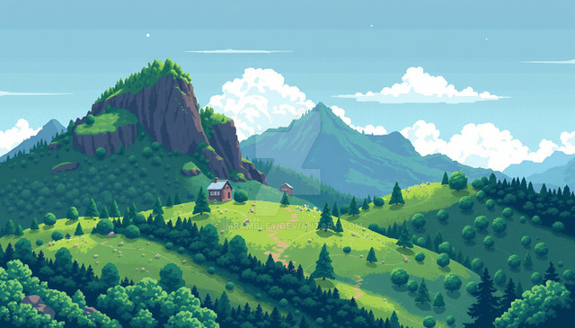 #pixelart #countryside #forest #illustration #sunrise #sunrisesky