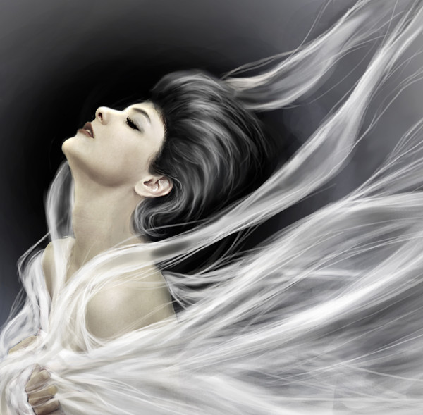Very beautiful, the detail of the girl's face and dress is amazing. However, the rabbits anatomy, the face and feet seem a little of. Overall love the colours
