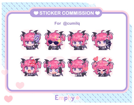 The new image of my stickers using my old oc Kurimu, I am excited about this update in my stickers art styleI Make Stickers commissions like this every month if you are interested in having some of these for your social medias, if so, stay tune for my open commissions! , don't forget to follow me on Twitter, you can find me as Happy_Emphy