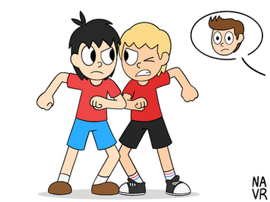 The boys are always fighting and arguing so their mother made them hand out with each other in a room lockedJunior and Maxwell are my ocβs