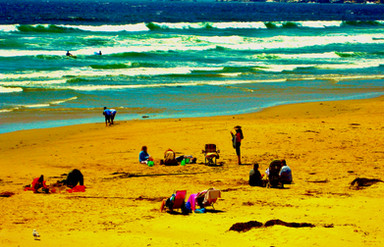 Picnic on the beach.Photograph.