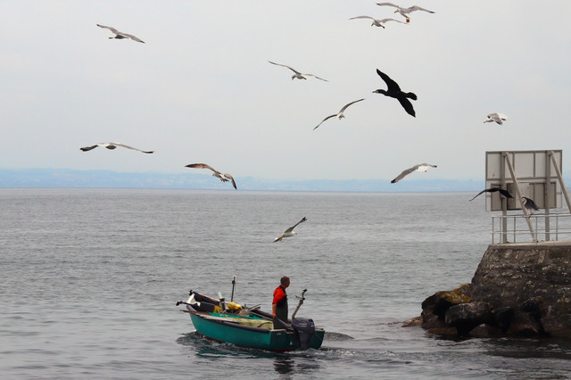 Arrival of a fishing boat.