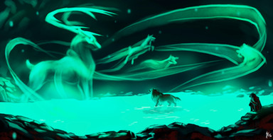 Love the colors in this one, btw! And the spirits in the sky above are an awesome touch! <3 Good luck to you as well! XD We need those first places!
