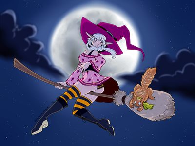 #commission #cute #feline #female #fluing #halloween #night #sky #witch