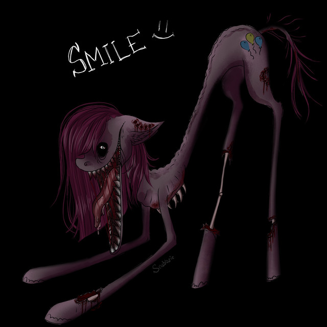 Awesome style! I love the idea of her mouth sewed like a forced smile.Also,pinkamena is one of my faves