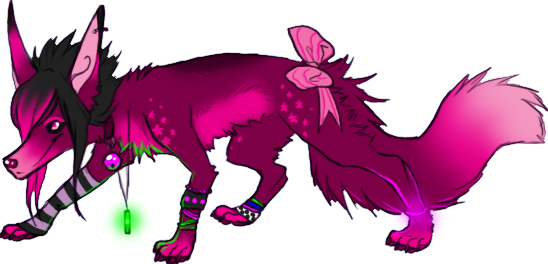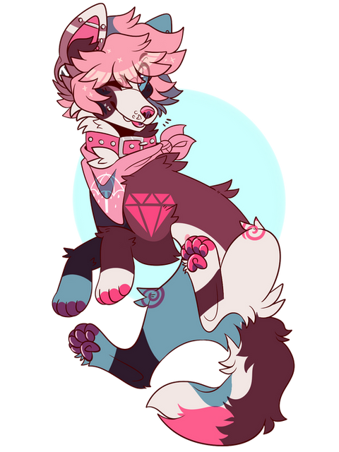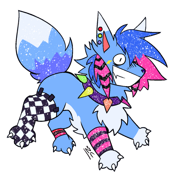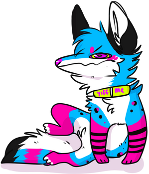 His name is Foxglove, no specific reason, mostly just like the flower and the way it sounds. I added the blue to kind of base him off the Trans pride flag, since he already had the pink and white, that's really the only difference from the plush! He can be drawn anthro and feral, in just about any kind of clothing.