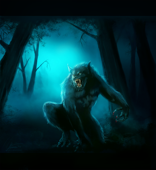 Wow, it looks just like a real painting! Lovely work. I adore the colours you have picked, and the look of the werewolf - seeming a little confused, like he just lost his trail of thought - is really nice.