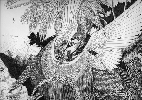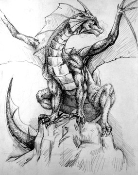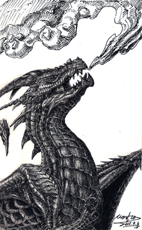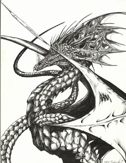 Pen and ink on cartridge paper.I really liked the design of this dragon. It's a pity I never managed to finish it.
