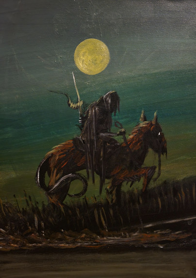 This image came into my head on the way home, so I thought I'd try a speed painting of it.Oil on canvas paper, 2 hours' work, no references or image prep (sorry about that, I know it shows.)