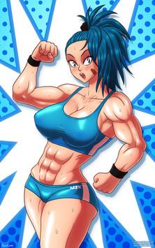 And I also want to add some spice and make her more sexy so I make her wear a very short sport bra instead of black shirt she always wears underneath.