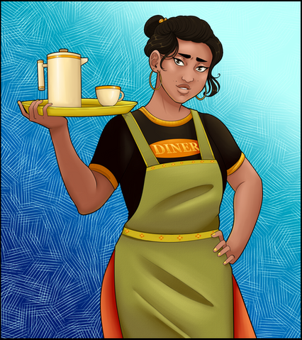 Illustration of a little vignette I'm writing? Yeah, this takes place after Caleb pulls Artemis into the tub, because she would not get in (but made everyone else). The tub is not there Because, Look At These Assholes. (I'm adding it later, the placeholder tub was rlly bad).