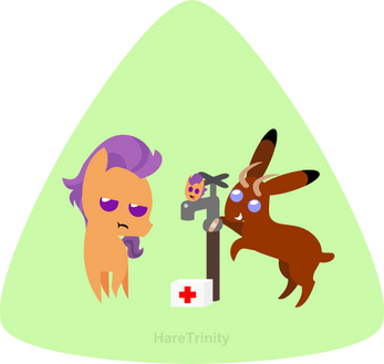 For long hours the ponies practised; direct kicks and ones intending to use the spikes, kicks aiming for legs, midriff, neck and head... Although the metal horseshoes were difficult to get used to the ponies soon showed improvement. Before long Applejack could kick a dummy off its legs and one kick from her brother, Big Mac, would see the dummy explode into sawdust.