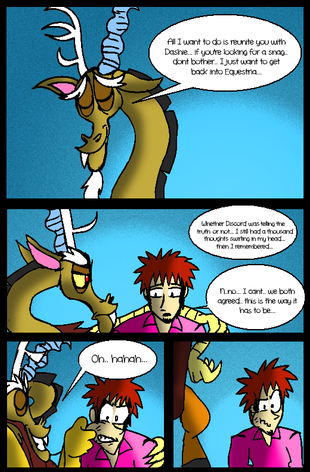For those of us who think that the Element of Laughter could solve some problems, given chance.Panel #3 could have had more detail but I was going for a "pained (from being told he's everything wrong with the world) but trying to hide it" look. Overall I've been up way too late on this so... Done for now.