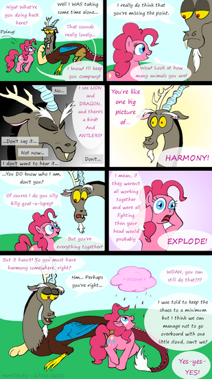 Amazing comic! I remember the first time I read it and itΒ΄s still as funny I have a theory which exposes that if Discrd was able to bear the 1000 years turned into stone without going mad is because he was already crazy before being imprisoned