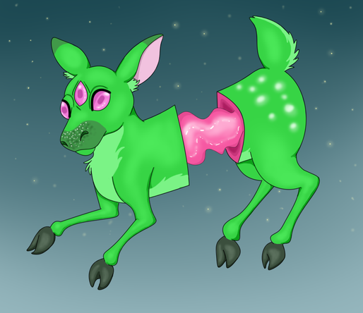 's Jellolope... Thing... I did a doodle and finished it as a warm up. Really don't like how the upper torso (especially the face) came out but oh well. May move this to Scraps later.I recommend checking out Squidbiscuit for her charming cartoony style, but only if you don't mind NSFW themes, overfeeding, (gassy) bloating, and some barfing. I wouldn't call sick my "thing" really but the pics are so cute!