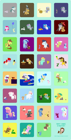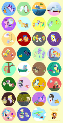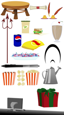 A big pic of the props I made for my March Lagomorph-Pony 2016 set, in case other people want to use them (either as references to trace or in the background of other pics, etc)! If you want to use any of these then please do, but if you could credit me that'd be grand: Just add "by !iconharetrinity!" with :s instead of !s and DA will link to me AND let me know so that I can come see.What's there: