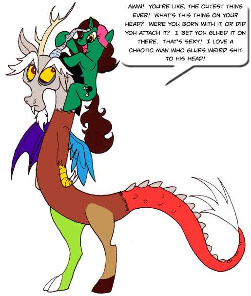 + Discord's head ended up so lacking in equine features the "equus" part of "draconequus" still needs some explaining.