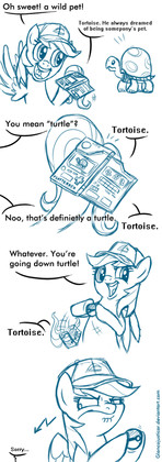 I'm glad the episode brought this up, that people can't tell the difference is... Well, I guess I should see it coming but I rarely do.And then someone on a MLP site's comments said that terrapins are ALL freshwater turtles, including (their own example) SNAPPING TURTLES.