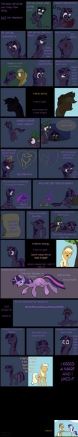 Secondly, being a brony does not mean you love every character no matter what they do and can never imagine them doing something wrong, it is taking what they do at face value, learning to tolerating it, and still loving them anyway... even if it is in the fanon like this is. And on another note, being a true brony, above all else, means that you do not judge and discriminate other people, you tolerate them and respect them, even if they differ from yours. I respect that you believe I do not deserve the title of brony and I am calmly trying to change your mind.