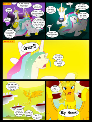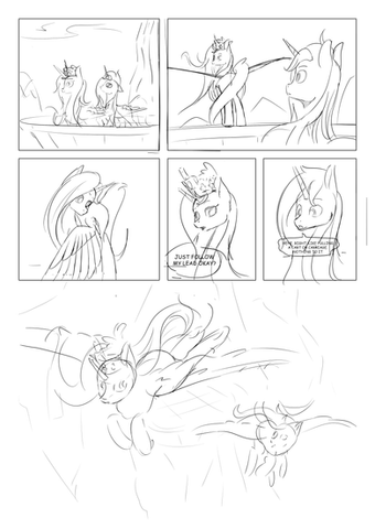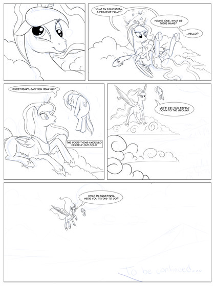 The chariot does have two pegasus ponies pulling it. I forgot at first and didn't want to change angles to something more cluttered, so... Only way you can really tell is by the wing harness in the first panel (implies a second half).