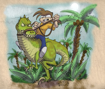 Working on a bunch of concepts for a story with dinosaurs in Medieval times. Lol...yeah.I guess this kid wants to be cool like the dinosaur-riding knights...dinosaur doesn't look too amused.