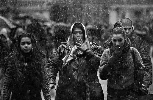 It shows a lot of energy and life in a scene that's both unusual for being outside but nevertheless a daily-life moment.