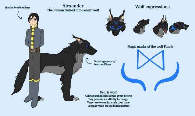 Bio: When Rowan was a young, he and his mother were caught and was brought to Syrus's castle. There he befriends another creature, a Lonx named Toka and together they escaped captivity, but not before wittnessing his mother getting killed and since then, Rowan and Toka have been looking after each other in the wild ever since. Years later Rowan discover a crystal that has the ability to turn him into a human and he soon learn how to act and how to talk like a human to avoid getting killed by hunters. A year later, Rowan finds a cave and encounters a certain Half-elf named Faidwen. The next day that night, he and Toka befriends with Faidwen and while fighting Haider and the monsters, Rowan reveals he's a wolfbear, the same one Faidwen encountered but even that, they still remained friends.