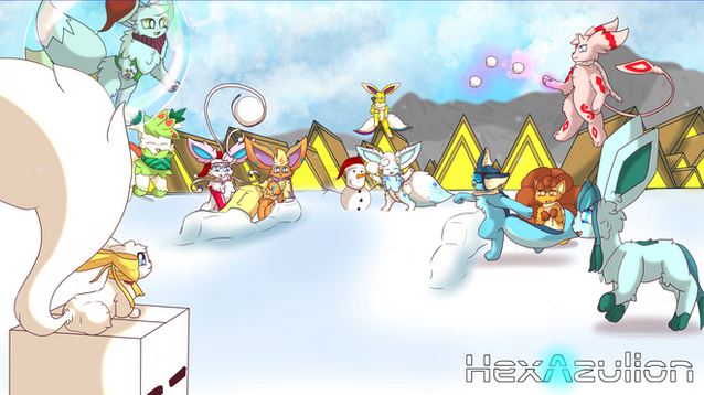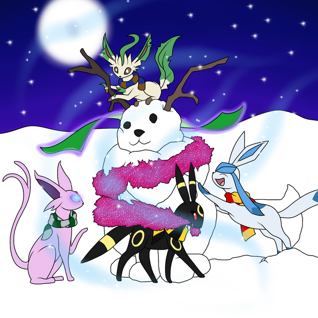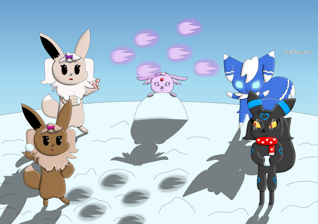 Oh my gosh i love this they all look like there having winter fun time great job my friend and thanks for including snowpaw he does need to be drawed more in his other forms , also i agree morphing eeveelutions need to stick together ;3